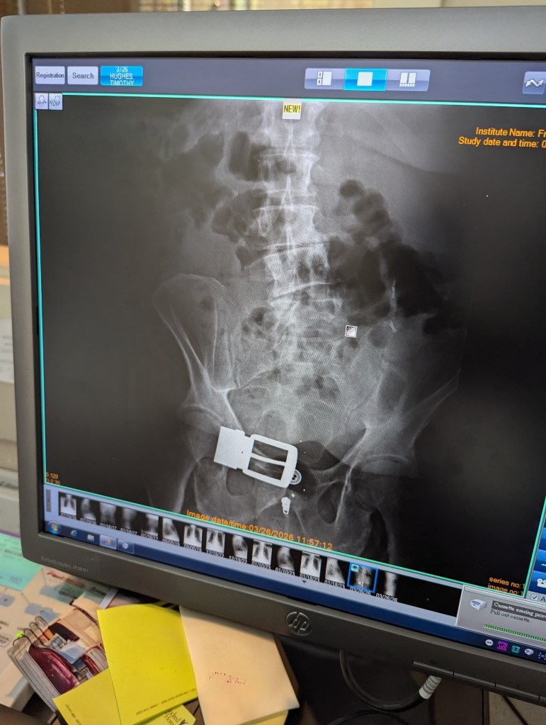 At this rate, if they scan me long enough, they’re going to find a spare bolt, a missing instruction manual, and maybe a “some assembly required” sticker.