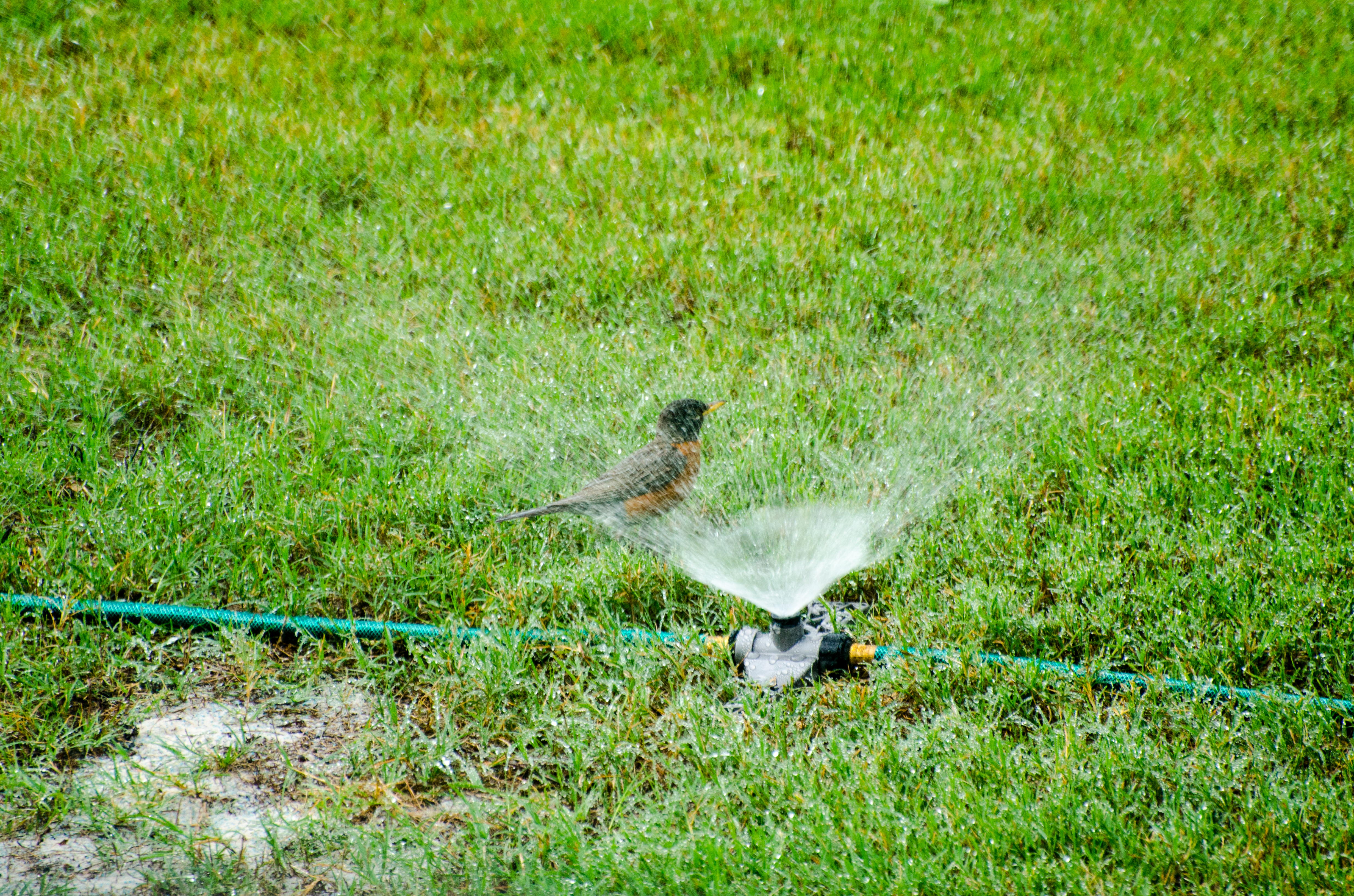It’s been very hot and muggy the past few days. Today we finally got some relief but the other day I was watering my lawn and noticed I had about seven or eight Robins taking a bath around my sprinklers. They were having a good time fluffing their feathers and getting clean.