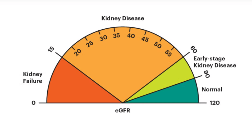 • Below 15 means kidney failure, and dialysis becomes a very real conversation