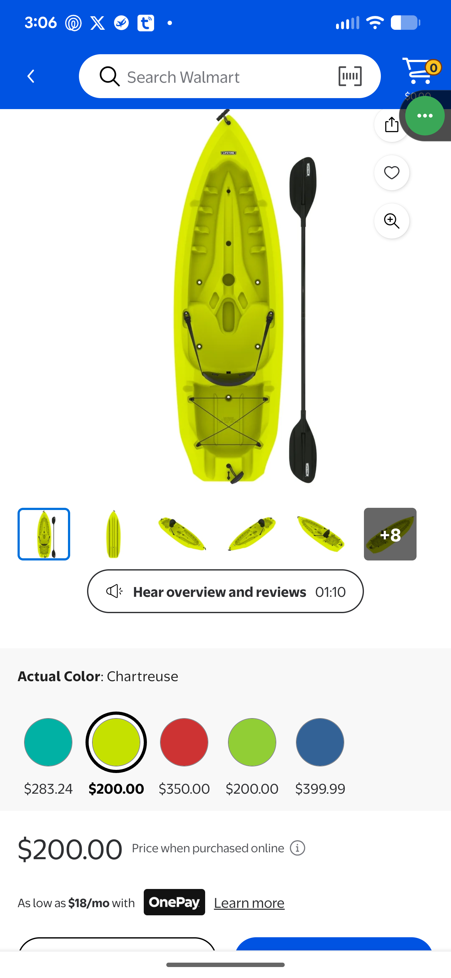 Not only did it clearly say the kayak came with a paddle, but it also showed that the price had dropped to $32, which was a bit shocking considering I had paid $200 the day before.